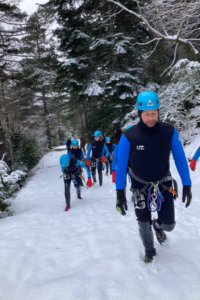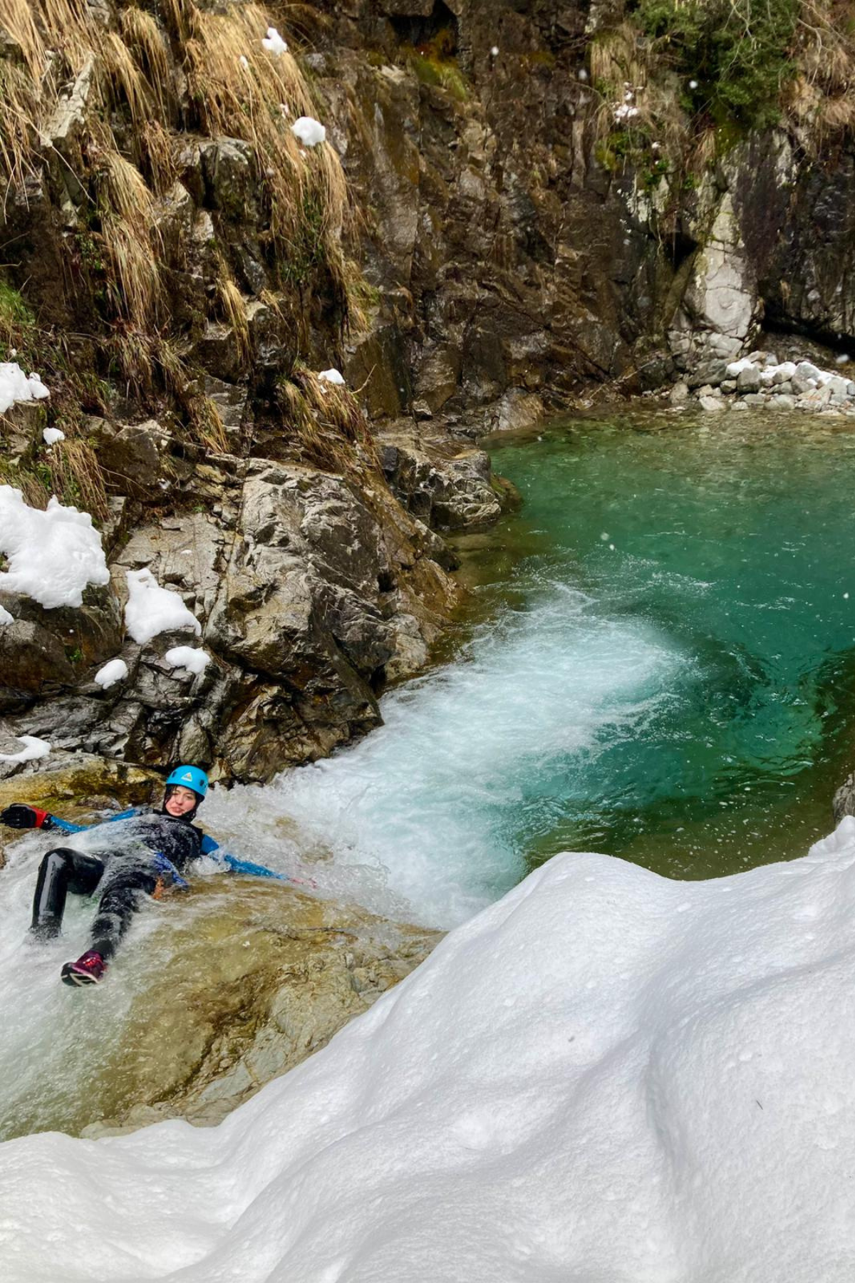 Même si l’activité est essentiellement pratiquée lors de la belle saison, rien n’empêche les amateurs de canyoning, et plus largement de montagne, à s’essayer à la descente des canyons enneigés. Ce sport hivernal encore peu connu (certains diront insolite !) propose de découvrir les canyons vêtus de leur plus belle tenue d’hiver.