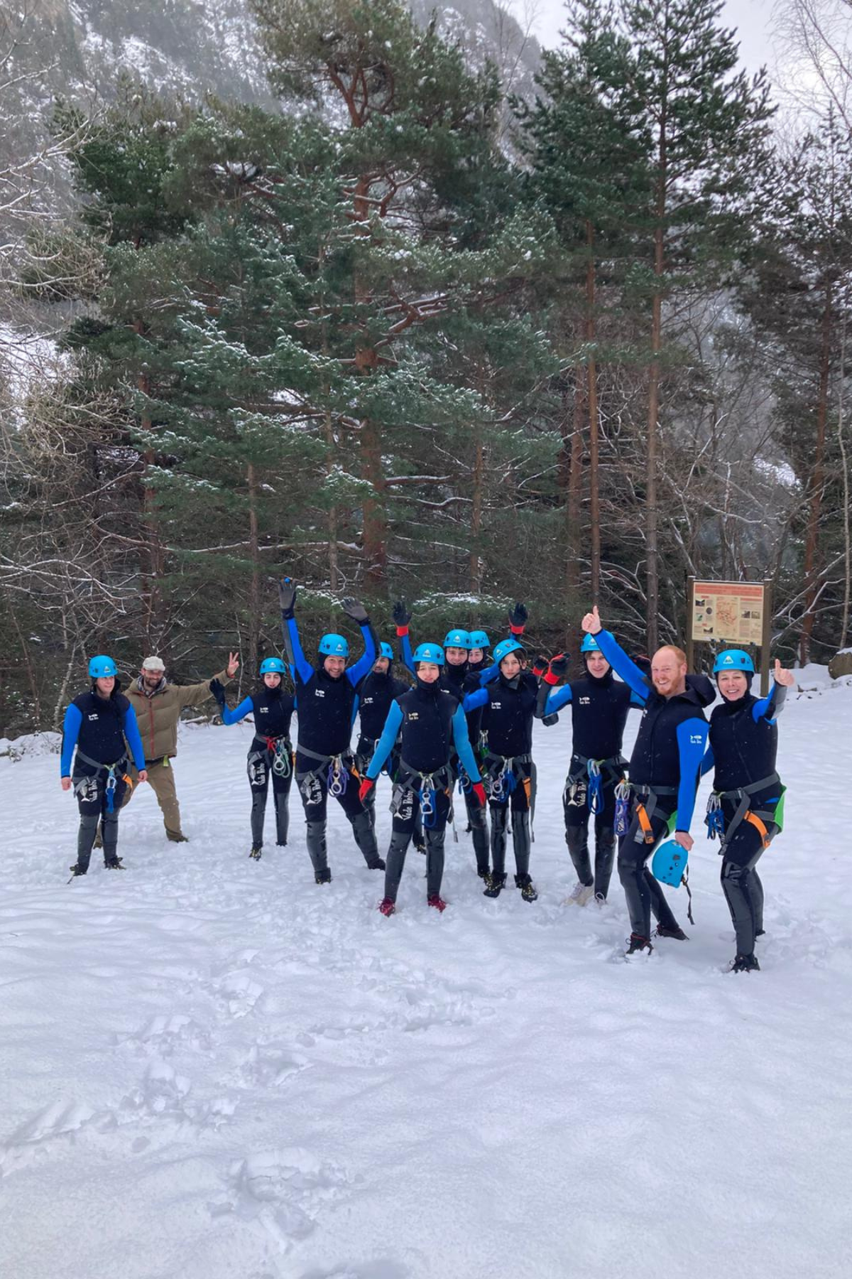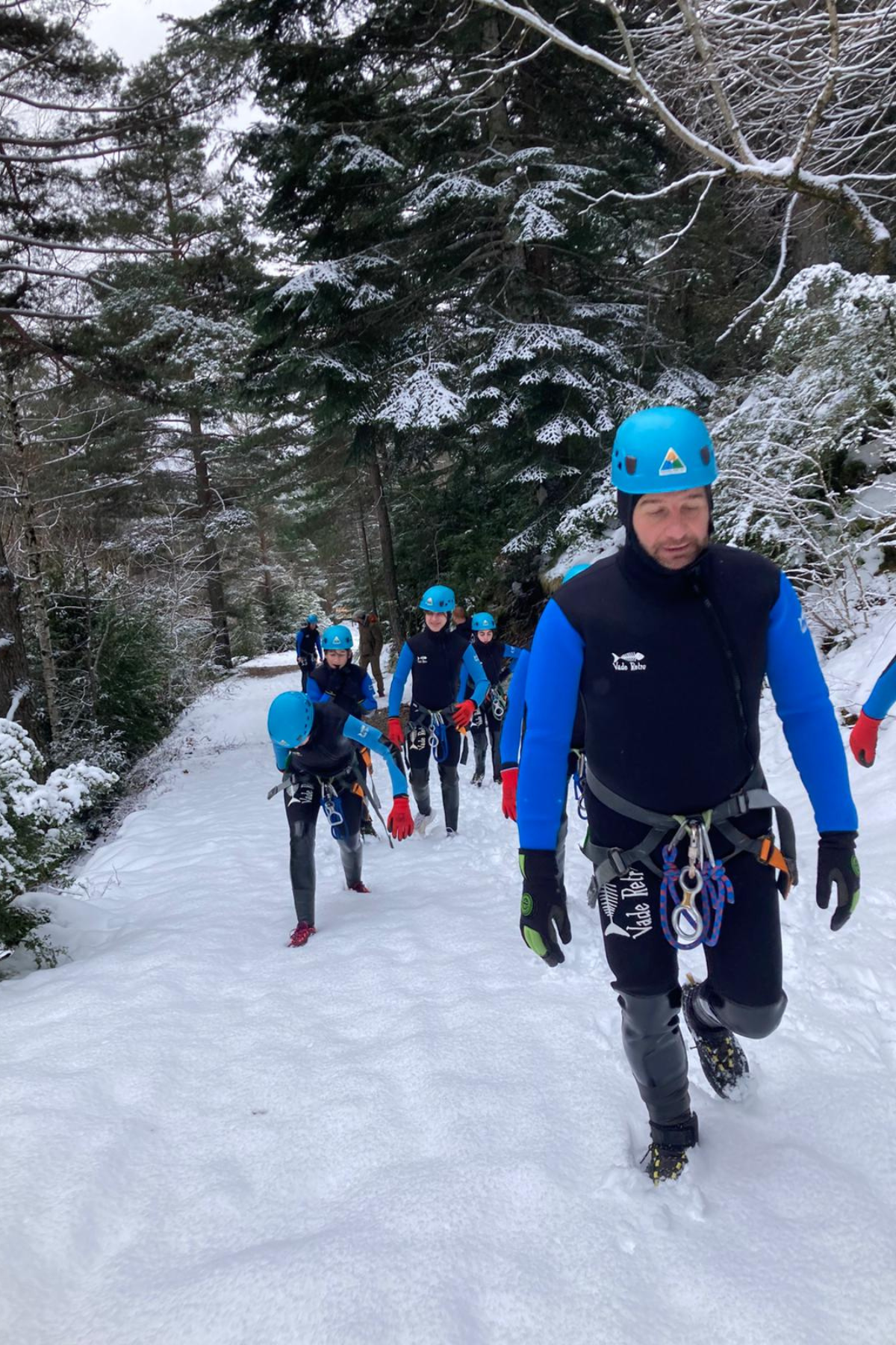 Tout se joue dans l’équipement. Et rayon équipement, on s’occupe de tout, ou presque ! Nous vous prêtons une super combinaison néoprène bien épaisse pour vous garder au chaud, un lycra, des chaussons et même des gants pour protéger vos mimines. La tenue parfaite pour profiter pleinement de l’activité. Une seule chose à emmener avec vous : les chaussures ! et on les préfère bien adhérentes pour éviter au maximum les glissades. Un bon équipement, des enchaînements de sauts, de toboggans et de rappels, un programme bien rythmé pour réchauffer tout le monde, même les plus frileux.