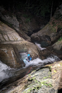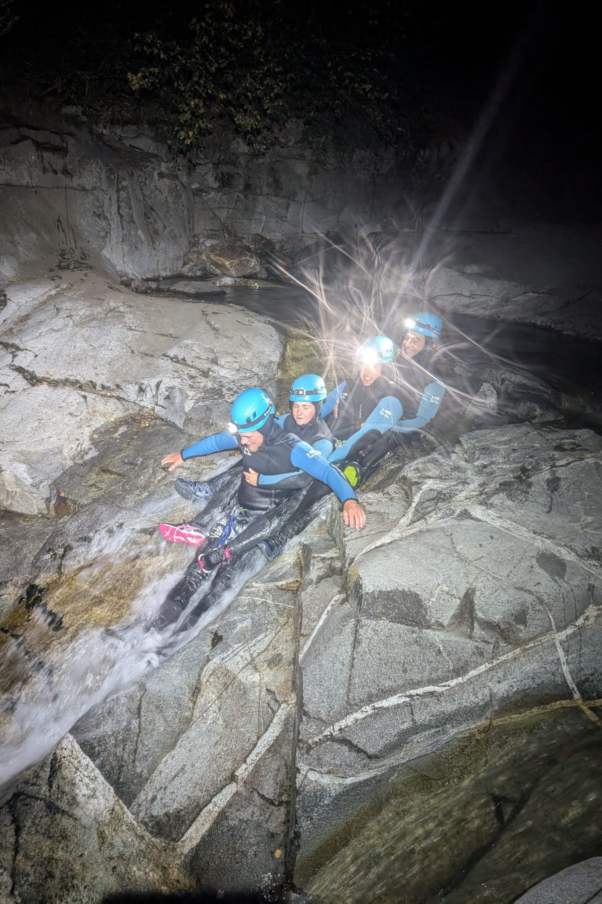 A l’heure où certains finissent leur repas en terrasse ou d’autres sont à l’apéro, nous vous proposons de partir à la découverte des canyons de nuit. Notre guide Diplômé d’État vous accompagne pour une descente inoubliable rythmée de nombreux obstacles : sauts, toboggans et tyrolienne.